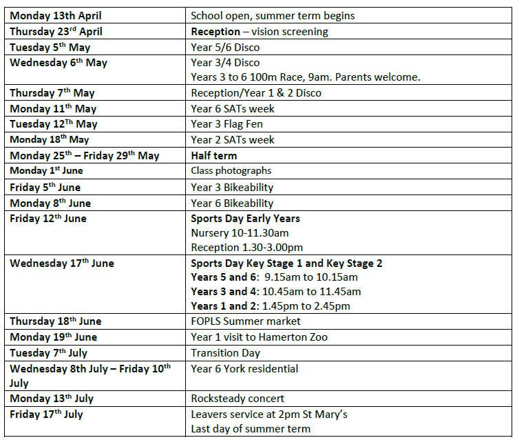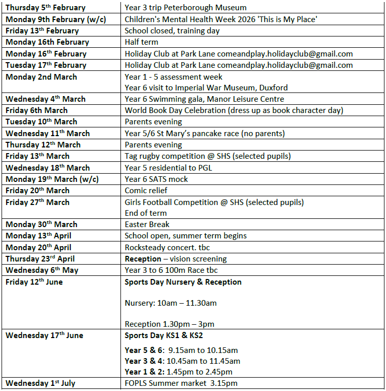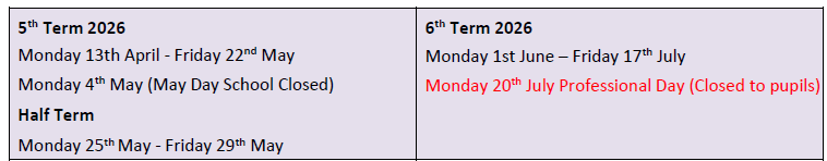 An up-to-date list of future term dates is below. Thank you for supporting our school we are proud of your children and all they achieve.