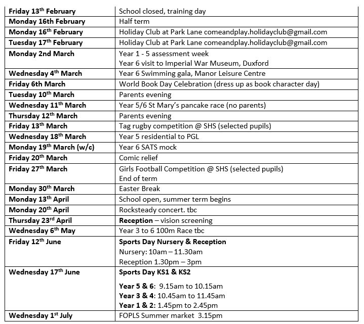 An up-to-date list of future term dates is below. Thank you for supporting our school we are proud of your children and all they achieve.